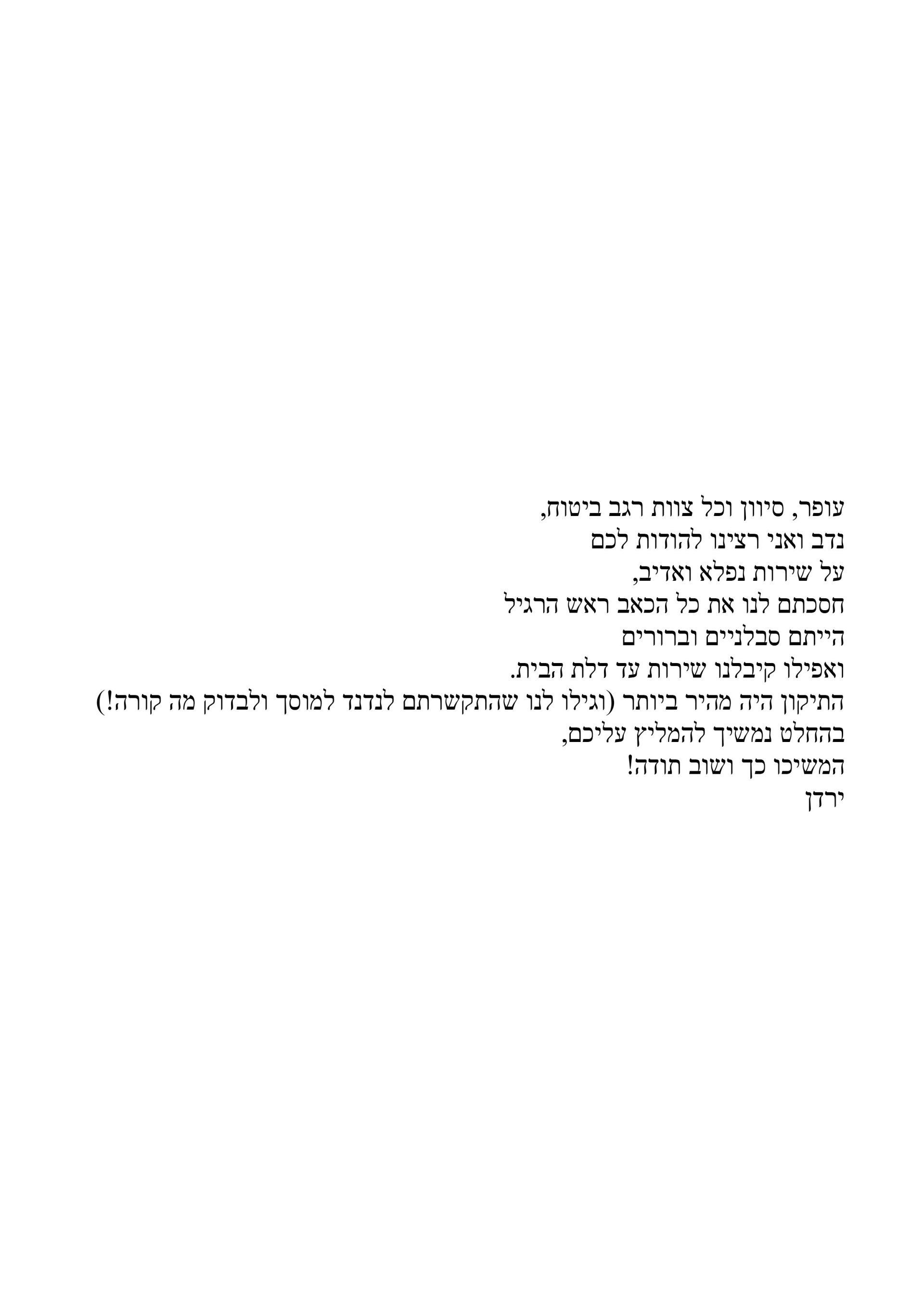 רגע לפני שאתם מתקשרים. קחו כמה דקות לקרוא מכתבי המלצה מלקוחות אמתיים שלפני הכל הם אנשים אמתיים שקיבלו שירות טוב, לתצוגה מוגדלת לחצו על התמונה: